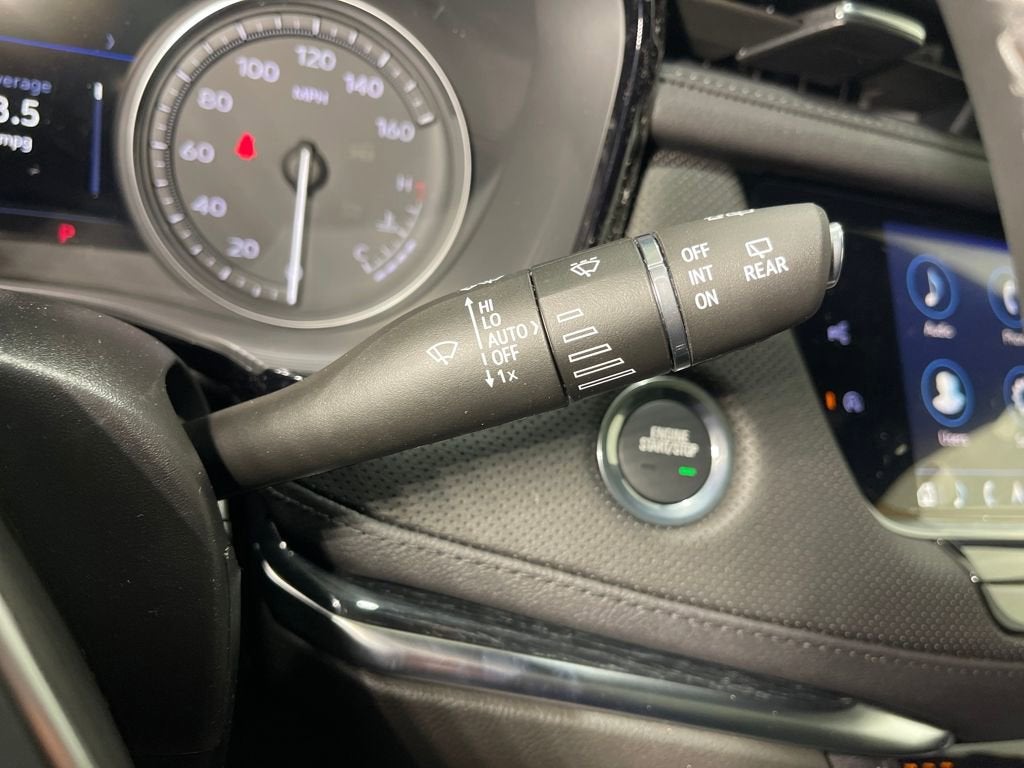 - Opens or closes when the system senses the key fob and the driver extends their foot under the left-hand side of the rear bumper over an image of the Cadillac Crest projected under the vehicle