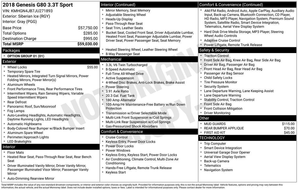 - Vehicle Name: Genesis G80