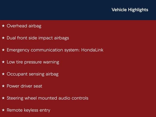 Platinum White Pearl Sport FWD CVT 1.5T I4 DOHC 16V Turbocharged VTEC Back Up Camera, Bluetooth®, Alloy Wheels, Audio Controls on the Steering Wheel, CD Stereo with Auxiliary Input, Clean Cloth Interior, Cruise Control, Dual Climate Control, Proximity Keyless Entry, Rear View Camera, Satellite Radio, Side Air Bags, Black w/Cloth Seat Trim, ABS brakes, Air Conditioning, AM/FM radio, Apple CarPlay/Android Auto, Auto High-beam Headlights, Brake assist, Dual front side impact airbags, Electronic Stability Control, Exterior Parking Camera Rear, Four wheel independent suspension, Front anti-roll bar, Front dual zone A/C, Front fog lights, Fully automatic headlights, Leather steering wheel, Low tire pressure warning, Overhead airbag, Overhead console, Power driver seat, Power windows, Radio data system, Radio: 180-Watt AM/FM Audio System, Rear anti-roll bar, Rear seat center armrest, Rear window defroster, Steering wheel mounted audio controls, Telescoping steering wheel, Tilt steering wheel, Traction control, Wheels: 19 Machine-Finished Alloy w/Black Inserts.
