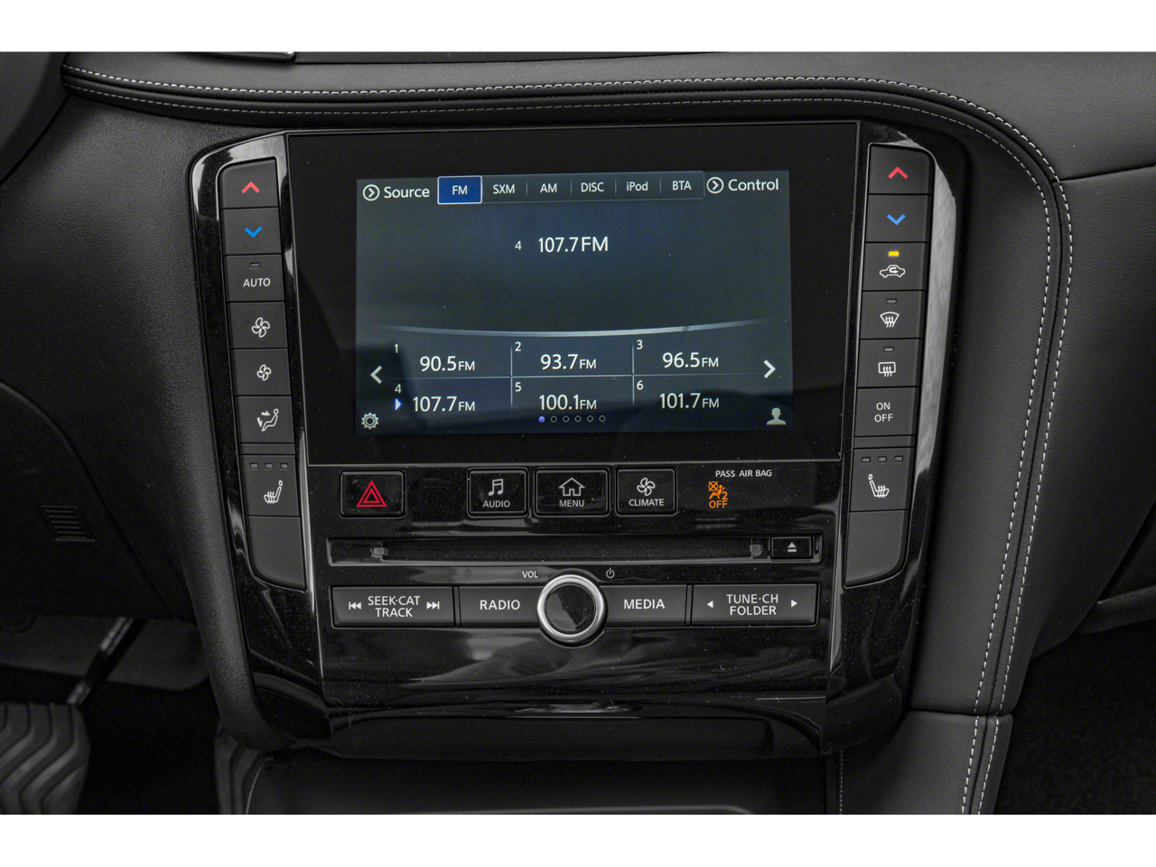 - Radio: AM/FM/CD Audio System -inc: 6-speaker w/4 USBs, INFINITI InTouch navigation w/upper 8" and lower 7" VGA LCD touch screens, INFINITI voice recognition for navigation, INFINITI InTouch services select w/4 year complimentary trial access to convenience services, INFINITI InTouch services premier w/12 month complimentary trial access to safety, security and convenience services, SiriusXM Traffic w/4-year complimentary trial access to real-time traffic information and SiriusXM Travel Link w/4-year complimentary trial access to weather, fuel prices, stocks, sports and movie times