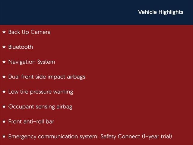 - Emergency SOS Capable Safety Connect (1-year trial) vehicle integrated emergency SOS system