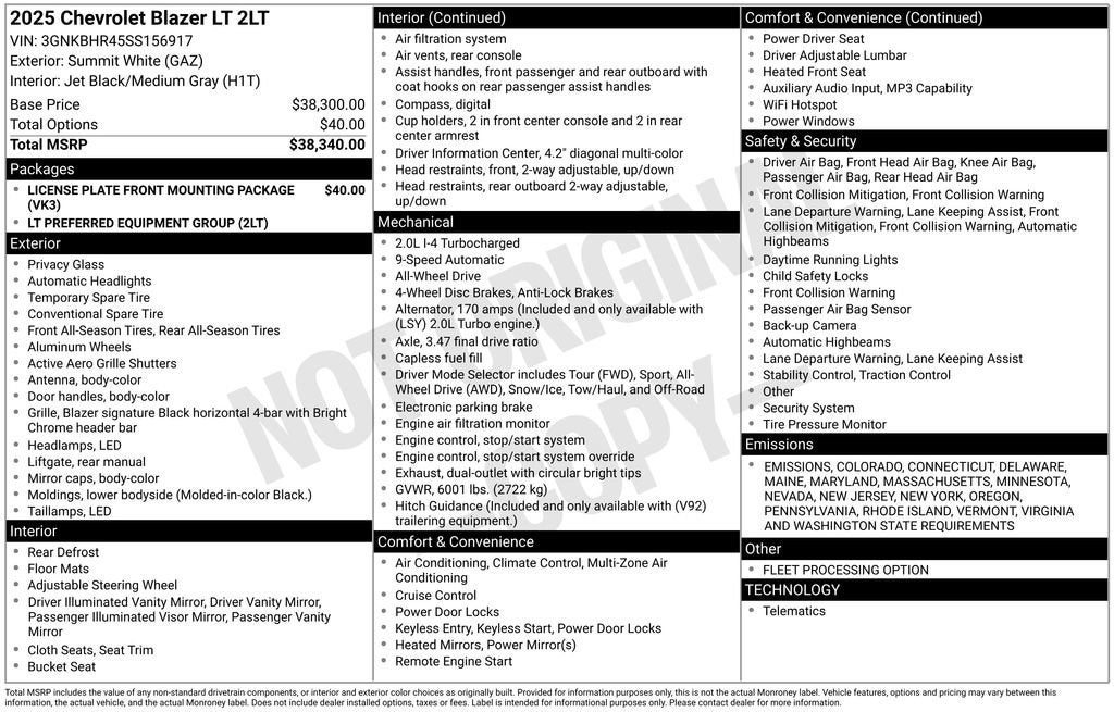 2025 Summit White Chevrolet Blazer 9-Speed Automatic with Overdrive AWD. 2.0L Turbocharged LT You will love our NO HAGGLE, NO HASSLE PRICING here at Fitzgerald Auto Mall. Ask us about our BUYER PROTECTION PLAN, LOANER CAR PROGRAMS, AND FREE Vehicle History Report. Can not find what you want?? NO PROBLEM! We have over 1,000 Pre-Owned vehicles available at WWW.FITZMALL.COM. You can also visit us in person at 114 Baughmans Lane Frederick MD, 21702 or Call Us @240-629-7301.