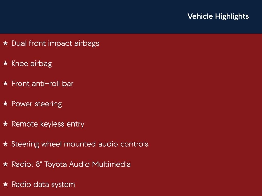 - Radio: 8" Toyota Audio Multimedia