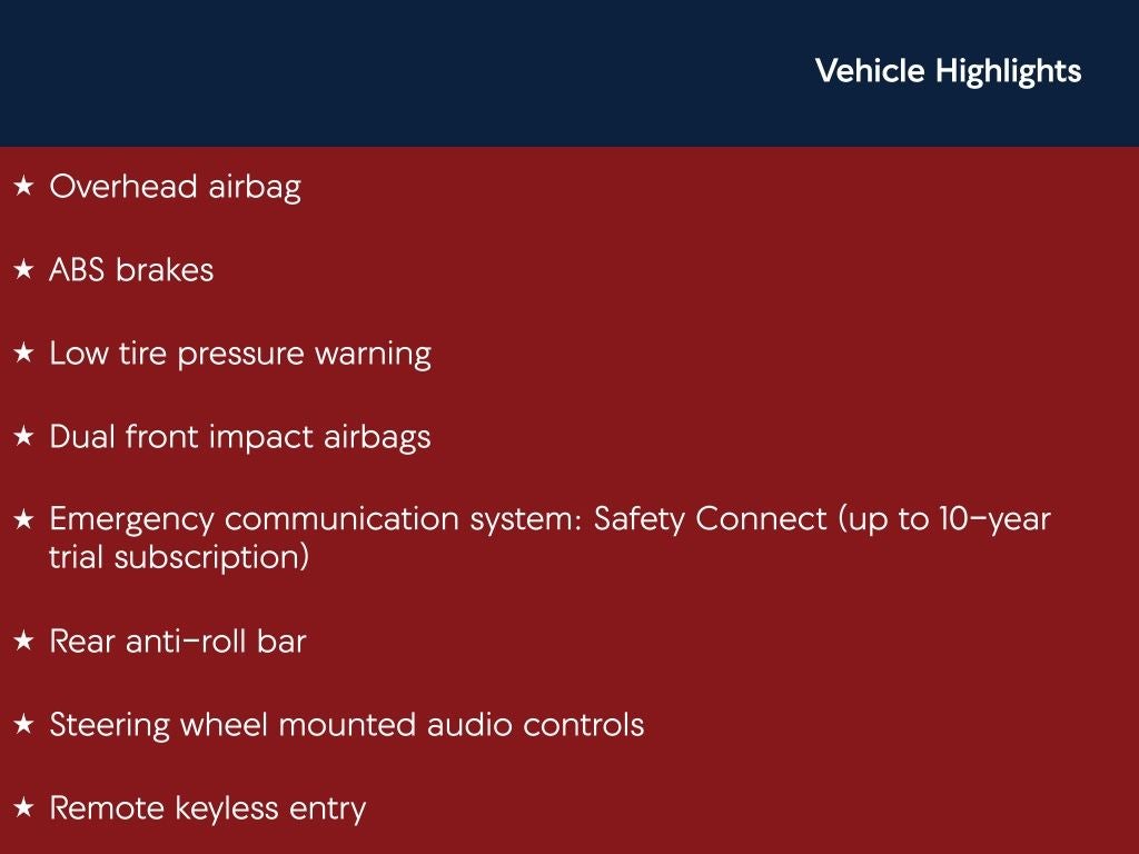 - Emergency SOS Capable Safety Connect (up to 10-year trial subscription) vehicle integrated emergency SOS system